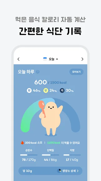 - 오늘 먹은 음식을 식단에 기록해 보세요. 칼로리와 탄단지 섭취량을 자동으로 계산해 드려요