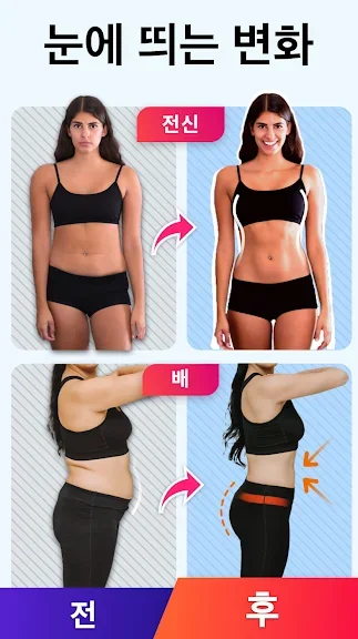 아래는 여성용 체중 감량 앱 - 홈 트레이닝 어플에 대한 스크린샷 정보입니다.