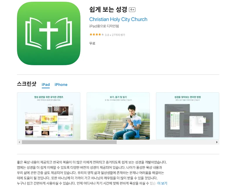 아래는 아이폰 쉽게 보는 성경 어플에 대한 자세한 설명입니다. 참고하세요.