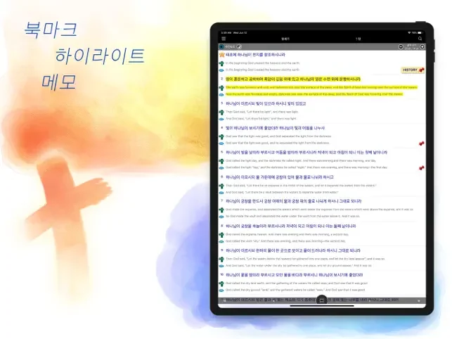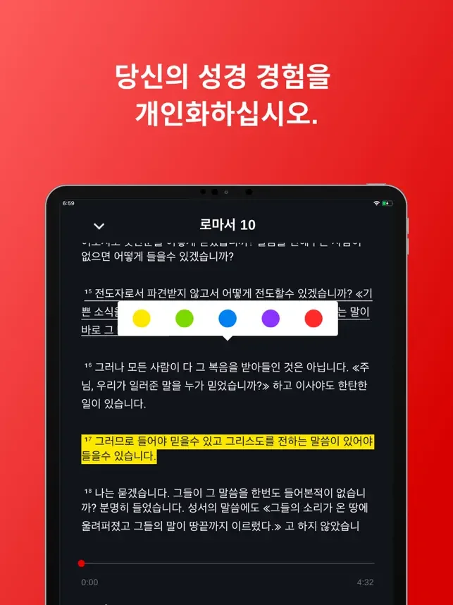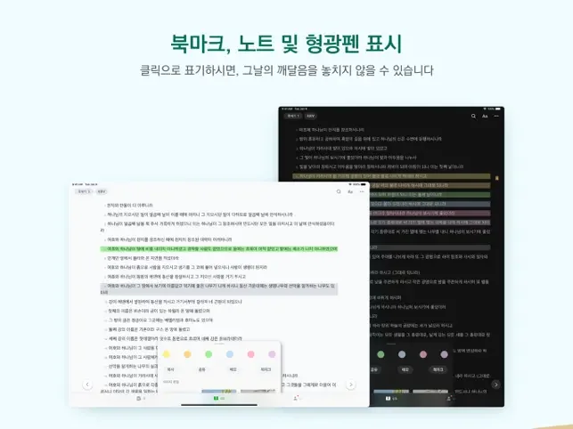 * 개인 성경처럼 사용자 지정 색깔로 하이라이트하세요.