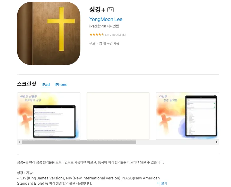 아래는 아이폰 성경+ 어플에 대한 자세한 설명입니다. 참고하세요.