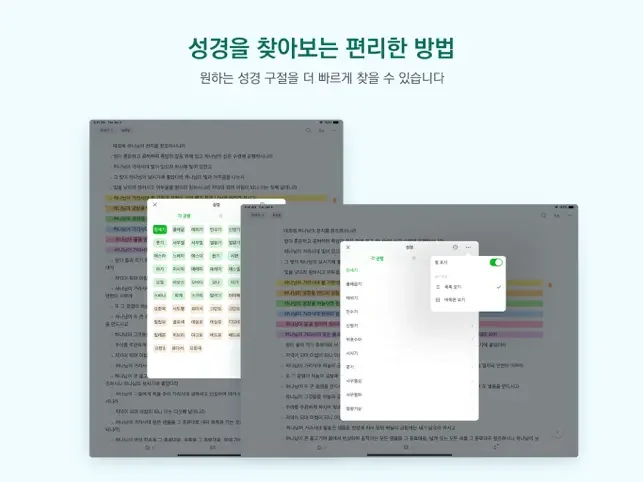 * 개인 성경처럼 사용자 지정 색깔로 하이라이트하세요.