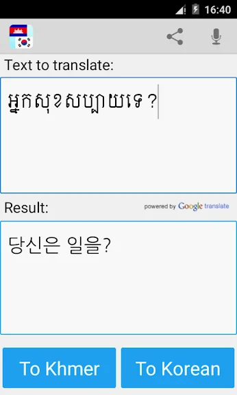 Translate Korean to Khmer is very easy and convenient to use for students, adults and for people who work in offices where they required to use Khmer Korean language on daily basis.