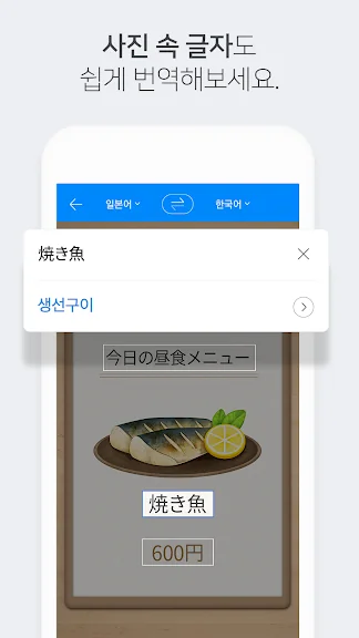 카메라로 찰칵 찍고 버튼만 누르면, 이미지 속 문자를 자동으로 인식하여 번역
