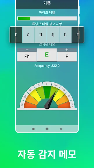 자동 모드로 기타를 더 빠르게 튜닝하십시오. 모든 음을 연주할 수 있으며 기타 튜닝 방법에 대한 힌트를 제공하기 위해 적절하게 감지합니다.