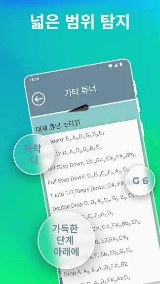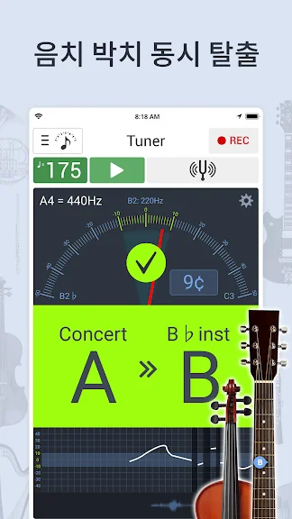기타 튜너를 시작하고 즐기세요! 전문 뮤지션이 디자인하고 테스트했습니다!