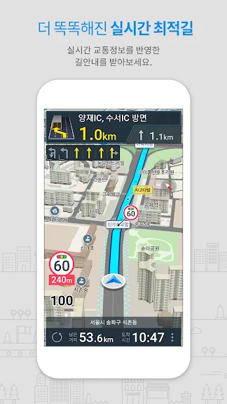 이용자들의 실제 운행 데이터와 실시간 교통정보를 바탕으로 찾은 최적의 길로 막힘없이 시원하게 달려보세요.