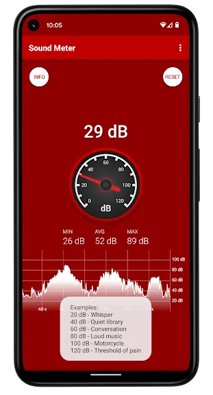 - 신뢰할 수 있는 정확도: 본 앱은 신중하게 테스트되고 대부분의 기기에 맞게 교정되었습니다. 이 정밀도는 실제 SPL 기기와도 맞먹는 정확함을 자랑합니다.