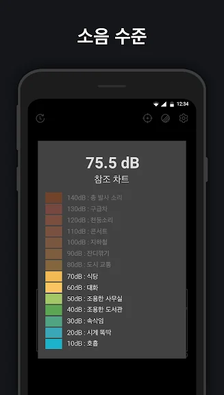 아래는 소음측정기 어플에 대한 스크린샷 정보입니다.