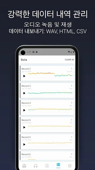 + 각 녹음본은 공유 서비스를 통해 고화질 PNG 그래프나 CSV 텍스트로 내보낼 수 있습니다.