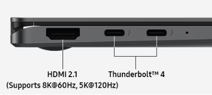 이 노트북은 다양한 포트 옵션을 제공하여 외부 기기와의 연결성이 매우 뛰어납니다. USB Type-C, USB Type-A, HDMI, 마이크로SD 슬롯, 그리고 Thunderbolt 4 포트를 지원하여 고속 데이터 전송과 다양한 디바이스 연결이 가능합니다. 와이파이 6E와 블루투스 5.2도 지원해 빠르고 안정적인 무선 연결을 제공하므로, 특히 원격 근무나 실시간 협업에 유용합니다.
