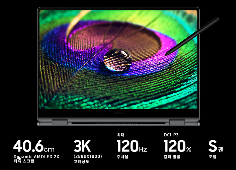 디스플레이 40.6 cm WQXGA+ AMOLED Display (2880 x 1800), Anti-Reflective, 터치스크린, S펜 지원