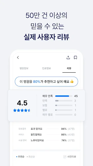 - 40만 건 이상의 방문자 리뷰로 신뢰도 높은 병원 정보를 확인할 수 있어요.