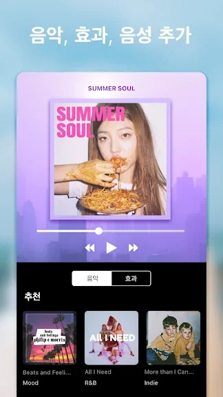 앱은 다양한 배경 음악과 상황별 효과음으로 영상에 생동감을 더해줍니다. 녹음 기능을 통해 사용자의 목소리를 바로 삽입할 수 있으며, AI 보이스 기능으로 텍스트만으로 음성을 추가할 수도 있습니다. 음성 변조 기능은 재미있는 음성 편집을 가능하게 하고, 애니메이션 옵션을 사용해 영상과 사진에 역동적인 모션을 추가할 수 있습니다.