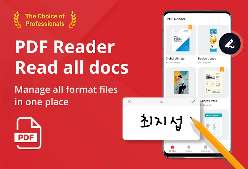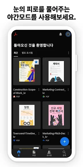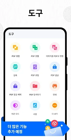 이 앱은 모든 파일을 자동으로 검색하여 깔끔한 목록으로 정리하고, 원하는 파일을 빠르게 열어볼 수 있습니다. PDF를 읽는 것뿐만 아니라 주석을 추가하거나 페이지를 분할하고 병합할 수도 있어 업무와 학습에 최적화된 도구입니다.