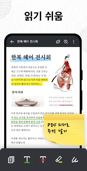특히 페이지 스크롤, 가로 및 세로 보기, 원하는 페이지로 즉시 이동 등 읽기 모드에서 다양한 설정을 지원합니다. 중요한 문단을 강조하거나 메모를 추가하는 편집 기능도 뛰어나며, 파일 암호화 및 압축 등의 고급 옵션도 준비되어 있습니다.