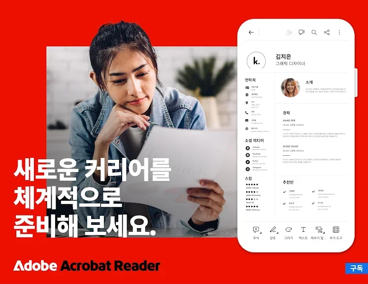 아래는 PDF용 Adobe Acrobat Reader 어플에 대한 스크린샷 정보입니다.
