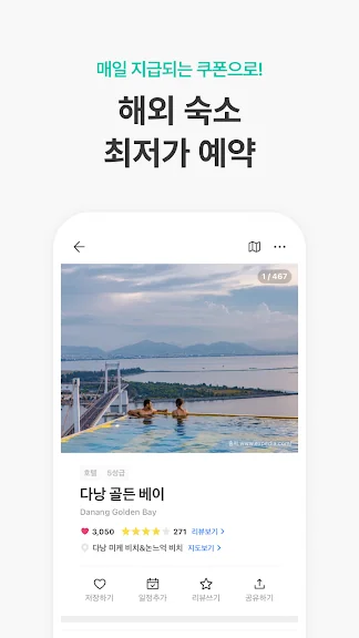 어플을 실행한 후, 원하는 여행 목적지와 날짜를 입력하면 항공권, 숙소, 렌터카 등 여행에 필요한 모든 정보를 한 번에 검색할 수 있습니다. 테마별 숙소 추천과 최저가 챌린지 기능을 활용해 더욱 합리적인 예약을 진행할 수 있습니다. 결제는 간편하며, 다양한 할인 혜택과 포인트 적립도 가능합니다.