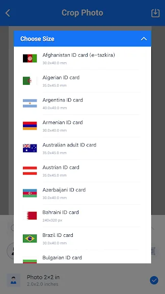 그 외에 캐나다, 인도 같은 많은 나라들의 증명사진이나 비자사진 사이즈 템플릿이 많습니다. 여권사진 크기 전체 목록이 애플리케이션에 있습니다.