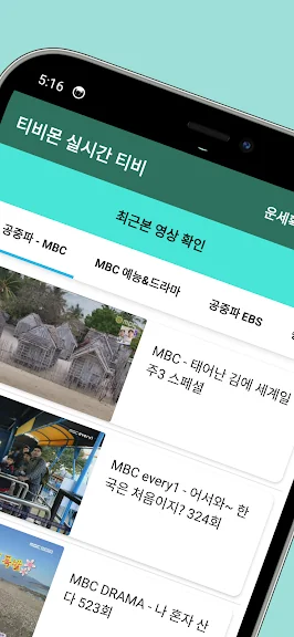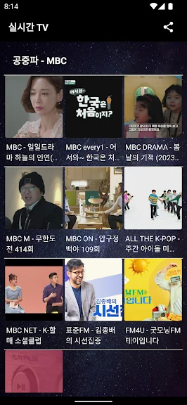 공중파 채널: MBC, KBS, EBS