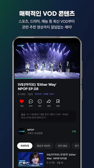 - 뮤지컬, 연극 등 문화・공연도 라이브로 즐겨 보세요.