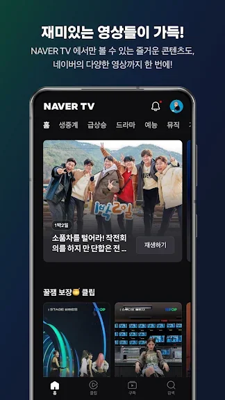 다양한 드라마, 라이브, 네이버 클립을 한곳에서!