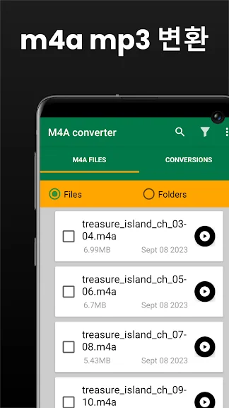 아래는 m4a mp3 변환 어플에 대한 스크린샷 정보입니다.