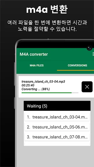 아래는 m4a mp3 변환 어플에 대한 스크린샷 정보입니다.
