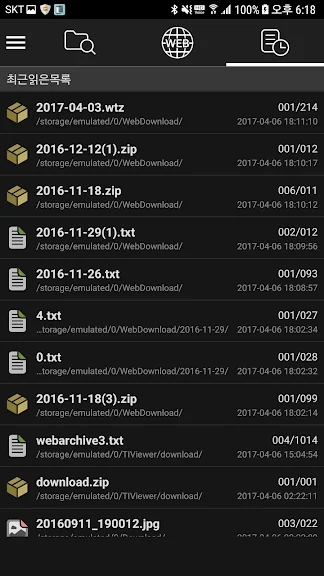 - 텍스트 파일만 있는 압축파일의 경우 압축을 풀지 않고 볼 수 있게 지원
