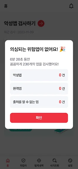 2) 싹다잡아 - 피싱, 스미싱, 큐싱, 보이스피싱 차단 어플 스크린샷
