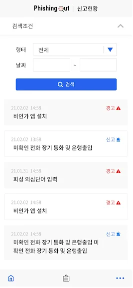 아래는 피싱아웃-보이스피싱완벽차단(불법앱감시,가족위치공유) 어플에 대한 스크린샷 정보입니다.