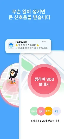 긴급 상황에서, 자녀는 SOS 버튼을 눌러 당신에게 알릴 수 있어요.