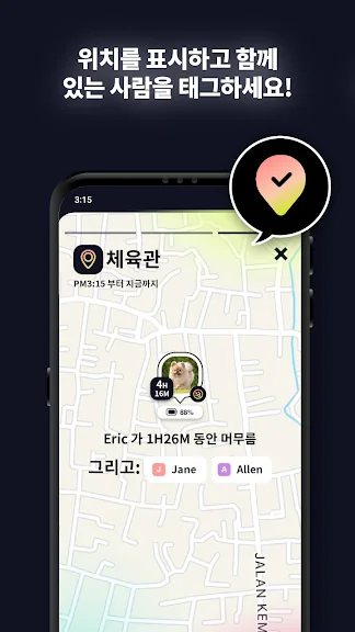 친구와 자동차 여행을 떠나시나요? 하우스 파티에 참석하시나요? 연인을 위해 깜짝 놀랄 생일 이벤트나 데이트를 준비하시나요? 친구의 실시간 위치, 배터리 상태, 장소에 머무른 시간, 현재 상태(학교, 직장, 집, 운전, 운동, 영화관, 샤워, 화장실 등)를 확인해 보세요.