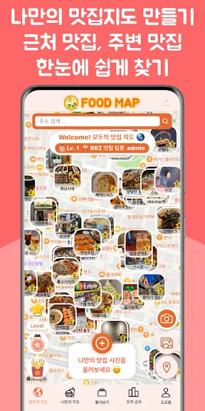 ‘모두의 지도’ 화면에서는 다른 유저들이 올린 모든 맛집 사진을 한눈에 볼 수 있습니다. 시간이 지날수록 맛집 ‘세계지도’가 완성됩니다.