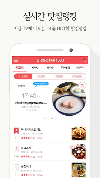 1. 전국맛집 TOP1000 - 실시간 맛집 랭킹&쿠폰 맛집 어플 소개