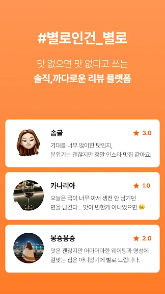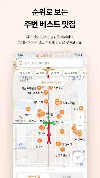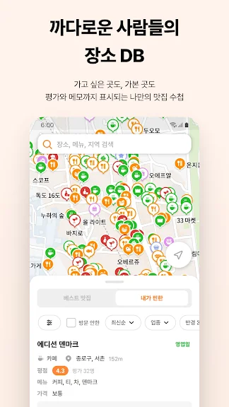 위치기반 시스템으로 업로드되기 때문에 유저가 직접 방문한 맛집 사진들이 올라옵니다. 광고 없는 '내돈내산' 맛집 어플입니다.