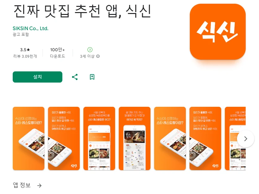이 어플은 구글플레이스토어에서 "전국 맛집 지도"로 검색했을때 3번째로 나오는 어플입니다. 아래는 진짜 맛집 추천 앱, 식신 어플에 대한 자세한 설명이니 참고하세요.