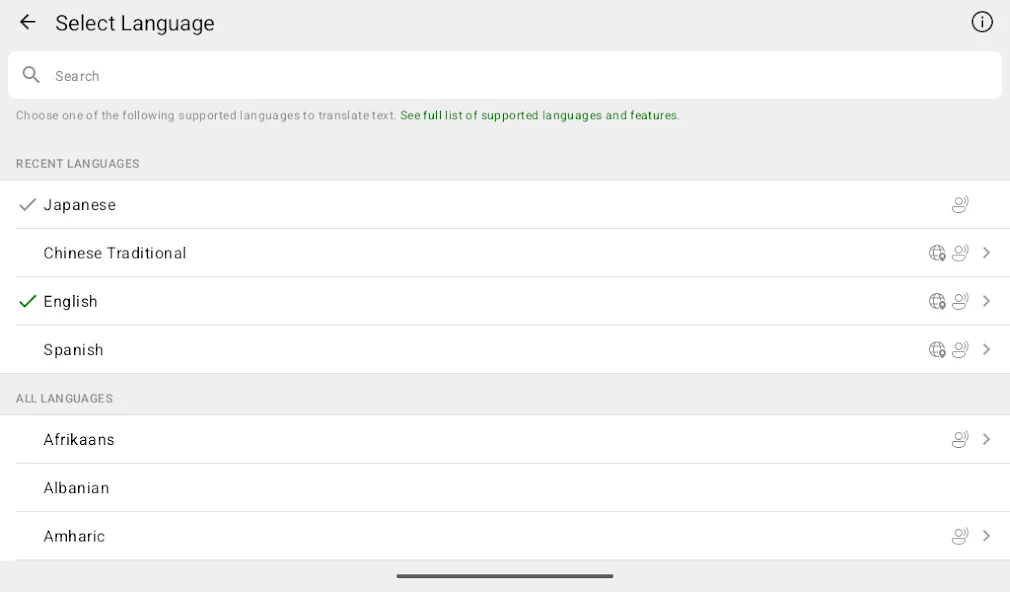 • 인터넷 연결 없이 여행할 때 오프라인에서 사용할 수 있도록 언어를 다운로드