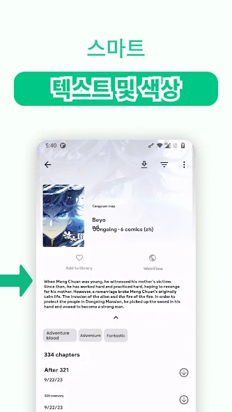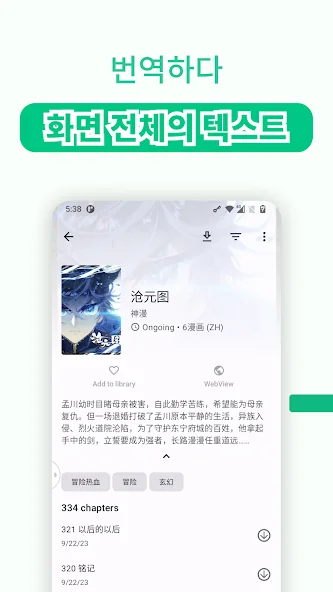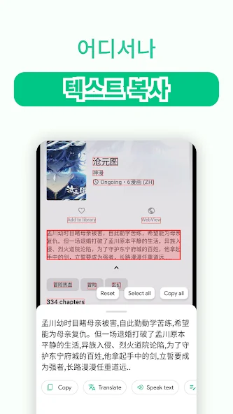 만화 모드: 어떤 언어가 아니라, 언어 장벽으로 읽기를 방해 받지 않도록 특수 처리된 수직 텍스트를 자세히 살펴보십시오.