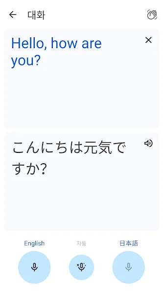 • 대화: 2가지 언어로 된 대화를 실시간으로 번역(70개 언어)