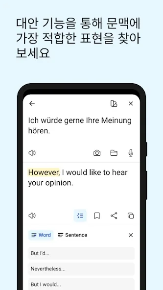 • 단어의 대안 번역 및 의미를 찾아서 자신을 표현할 수 있는 최상의 번역을 찾기