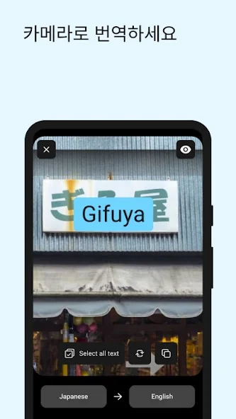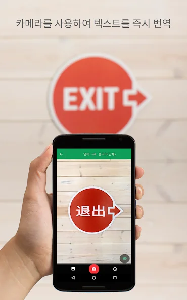 - 카메라 번역: 사진을 찍어 이미지상의 텍스트를 번역(25개 언어 지원).