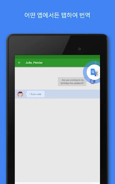 • 탭하여 번역: 어떤 앱에서나 텍스트를 복사하고 Google 번역 아이콘을 탭하여 번역(모든 언어)