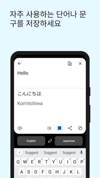 - 저장된 번역: 북마크 아이콘을 탭하여 나중에 참조할 수 있도록 단어와 구문을 저장