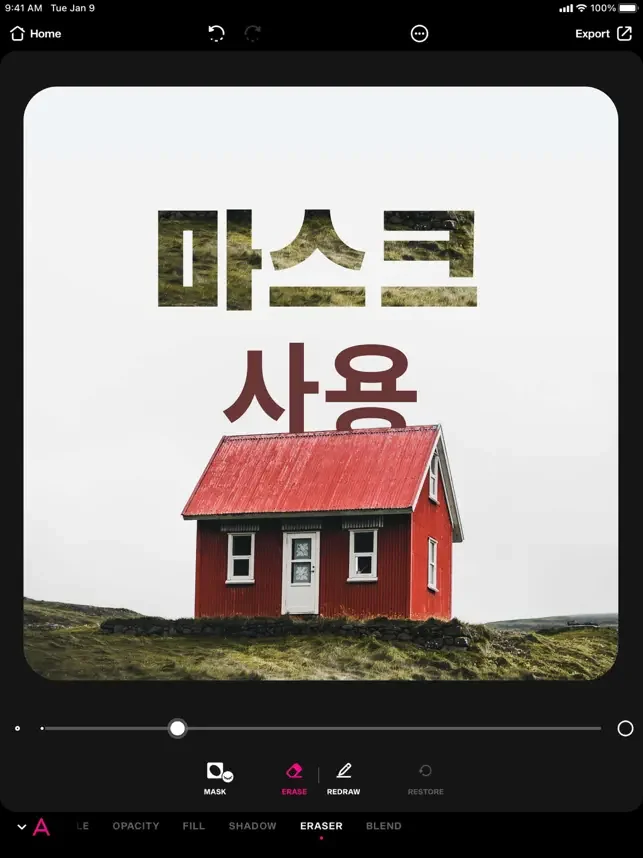 • 부분 삭제, 일부 텍스트를 삭제하여 이미지의 요소로 텍스트를 가리는 효과를 구현할 수 있습니다.