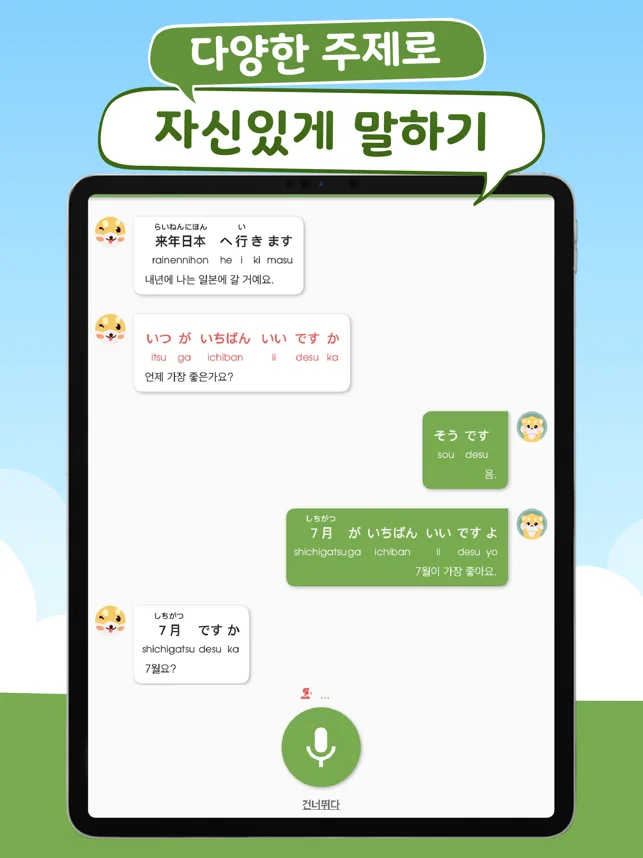 이 앱은 무료로도 충분히 유용한 기능들을 제공해요. 히라가나와 가타카나를 쉽고 친근하게 익힐 수 있고, 일상에서 자주 쓰는 표현들도 연습할 수 있답니다. 게다가, 간단한 오디오와 마스코트 캐릭터의 응원으로 학습이 더 즐거워지는 느낌이에요.
