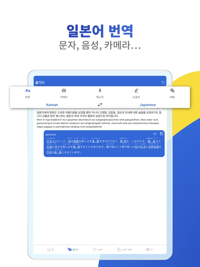 일본어 뉴스를 읽거나 JLPT 시험 준비도 이 앱 하나로 충분히 할 수 있어요. 다양한 연습 문제와 퀴즈, 그리고 실시간 번역 기능이 함께해서, 학습이 더 자연스럽고 편리하게 느껴질 거예요.