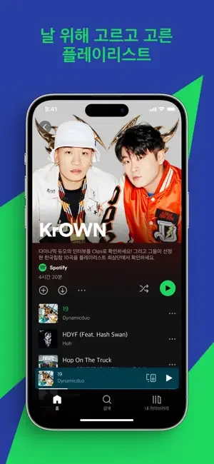 전 세계 다양한 글로벌 아티스트부터, 대한민국을 빛내는 K-Music 아티스트의 음악을 Spotify에서 즐겨보세요.