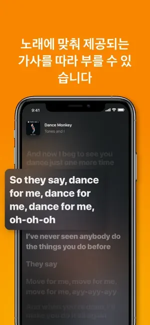 들리는 노래에 맞춰 제공되는 가사를 따라 부를 수 있습니다.