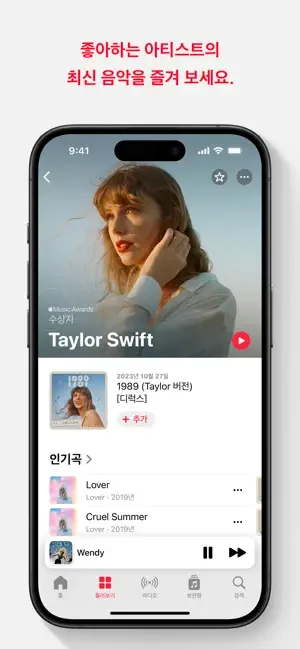 *Apple Music에서 음악을 감상하거나 뮤직 비디오와 노래 가사를 확인할 수 있습니다.